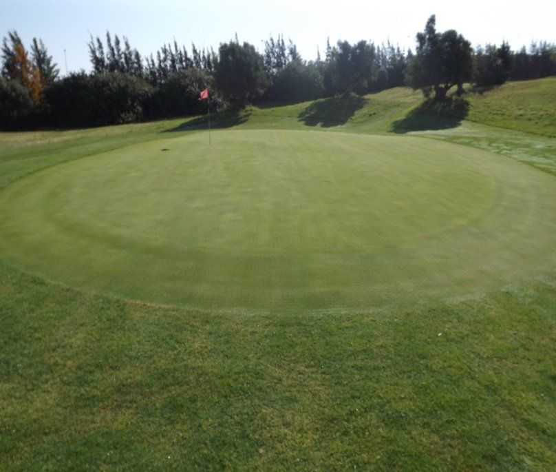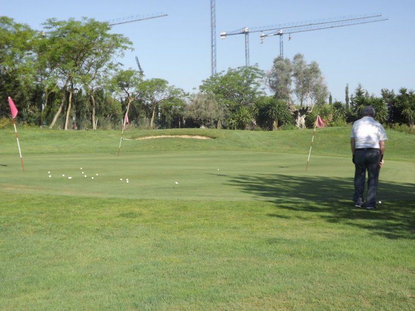 Se eligio un green situado en la zona de la escuela de golf. En este green, al igual que en otros del mismo campo no se apreciaban defectos notables a primera vista aunque una vez analizado en profundidad se podia observar una compactacion excesiva del suelo asi como una densidad vegetal pobre y enrraizado deficiente, por lo que el efecto de picado de la bola al llegar al green era bastante acusado pudiendose apreciar este picado en todo el green. Además de la presencia de malas hiervas y sintomas de enfermedades fungicas. Estados unidos como referente en lo relacionado con el cuidado y mantenimiento de los campos de golf vienen usando desde hace algun tiempo, guano de murciélago como regenerador de los suelos y fertilizante en muchos de sus green, por lo que nos decidimos a realizar este ensayo de su uso y ventajas en el campo de golf SHERRY GOLF JEREZ en el que al igual que en otros campos el abonado principal es a base de abonos quimicos, provocando en muchos casos un bloqueo de los nutrientes en el suelo, asi como la destrucción de la vida microbiana del mismo y por consiguiente una notable disminución en la cálidad del green. Por otra parte el aporte de materia orgánica se suele realizar usando concentrados liquidos que no llegan a desarrollar todas sus propiedades devido en parte al continuo riego al que es sometido el campo provocando un lexibiado que se pierde por los drenajes devido a la poca capacidad de rentención de los suelos degradados suponiendo un costo en mantenimiento y mano de obra además de la proliferación de enfermedades funjicas, nematodos y otras afecciones caracteristicas de suelos con una fertilidad reducida como consecuencia de la desaparición de la materia Orgánica y toda la microbiologia que acompaña a esta..